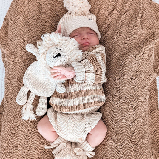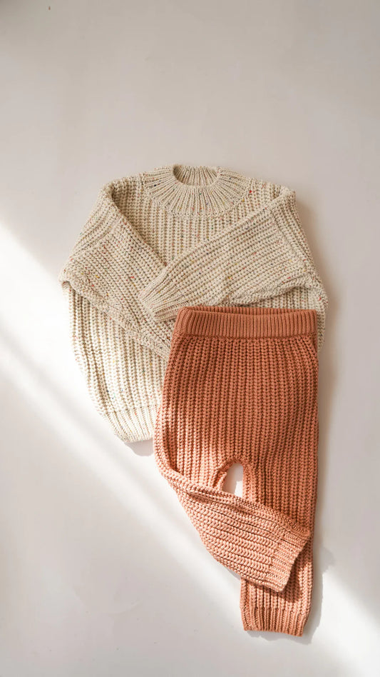 Chunky Knit Jumper - Muted Green & Mushroom Stripes