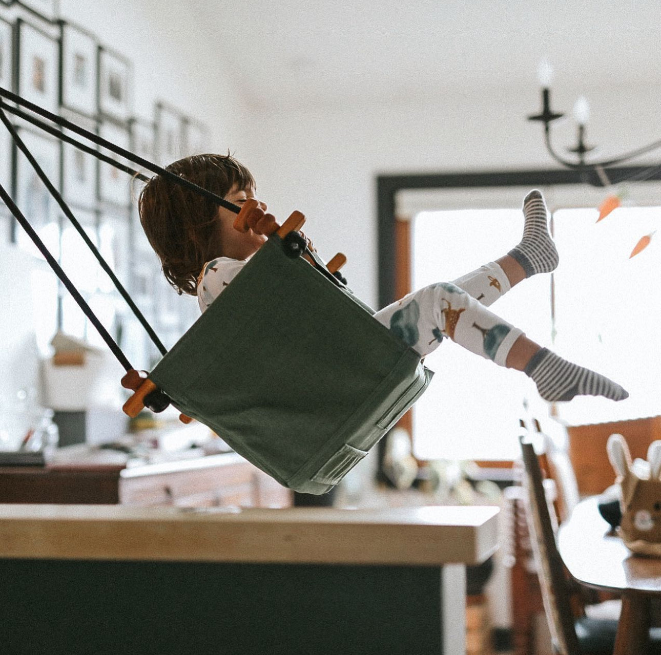 This Solvej swing is an exclusive and attractive baby and toddler swing for the home environment, indoors and out, skillfully crafted with top quality materials. The timeless natural design and colour range means this swing will complement any home and garden environment.