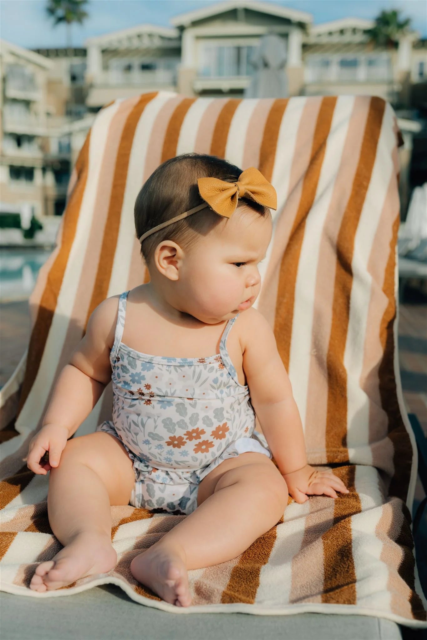 We are excited to introduce our 2024 Mebie Baby Swimwear Collection! Our swimsuits are made with high quality fabric and our exclusive timeless designs. Your little one is sure to make a splash at the pool in their Mebie Swimwear. This one-piece has snaps for convenient and quick diaper changes!