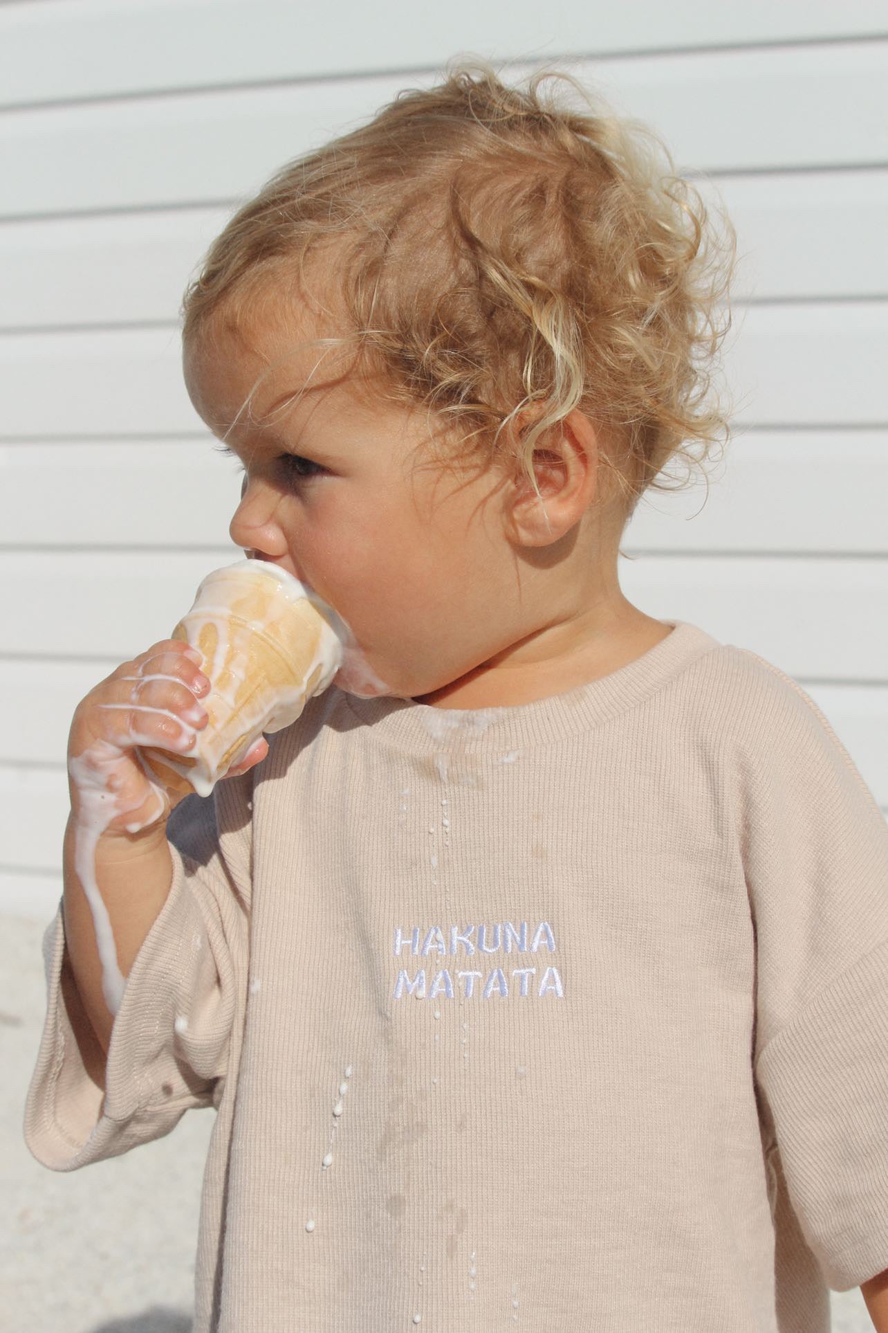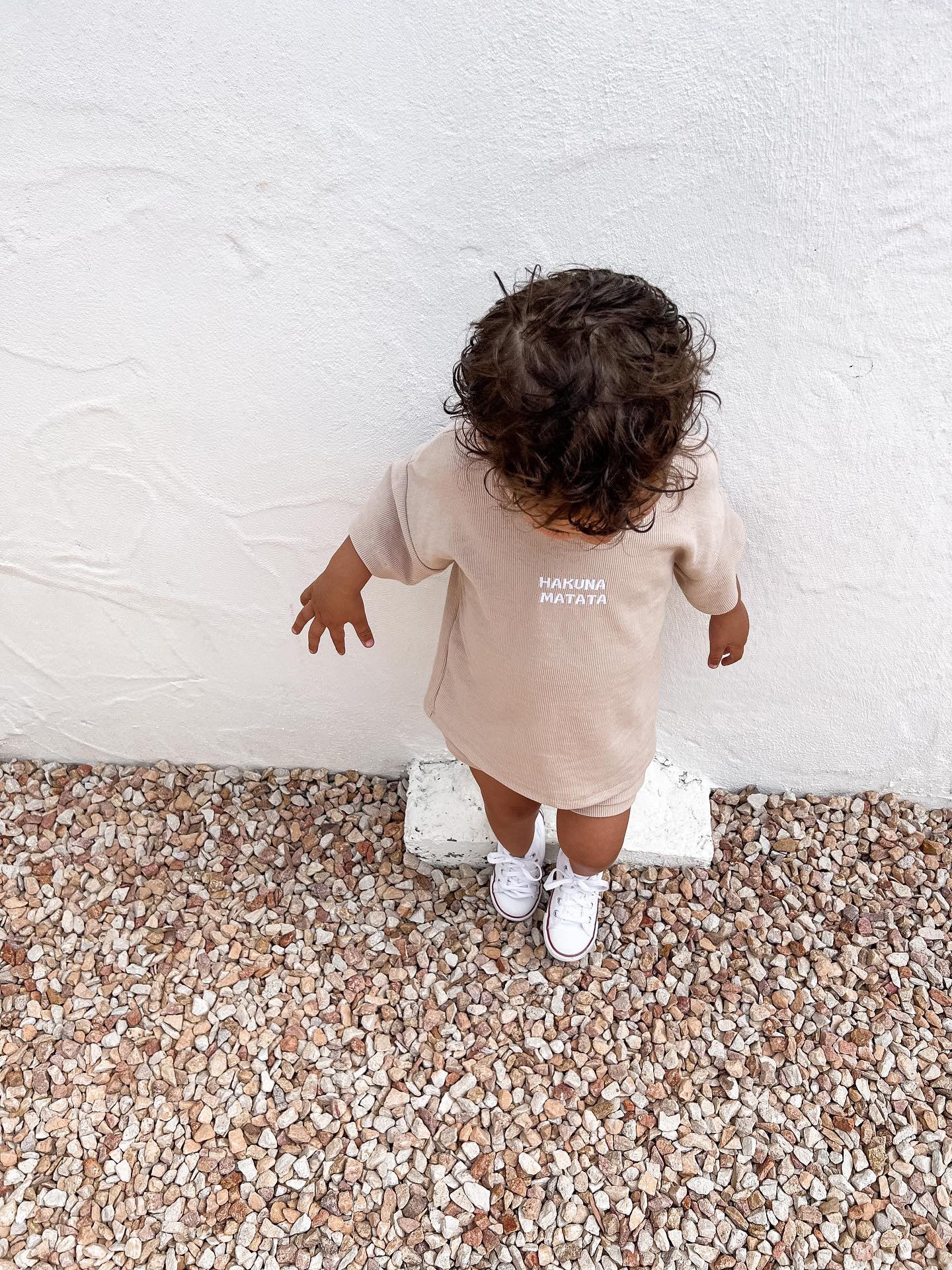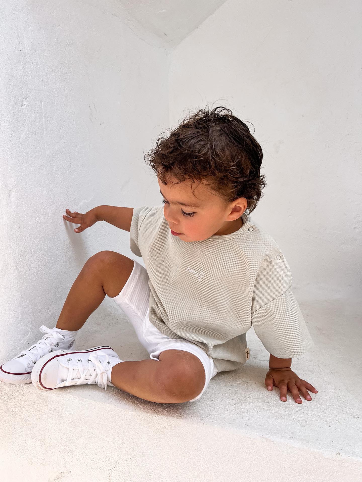 The durable construction ensures long-lasting wear, while easy care instructions make it a convenient choice. Let your child embrace carefree vibes with this iconic tee, shorties in the same fabric and colour also available.