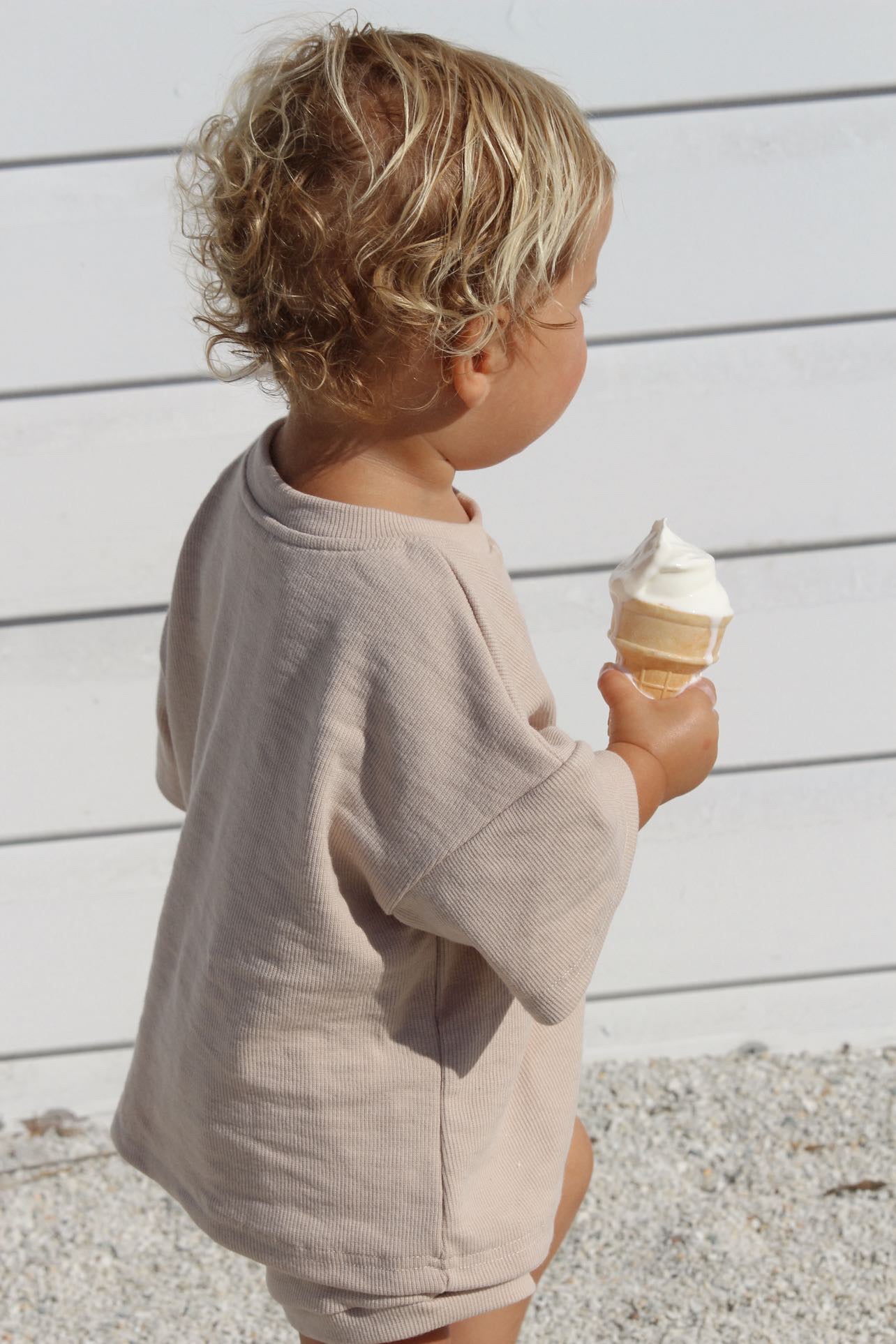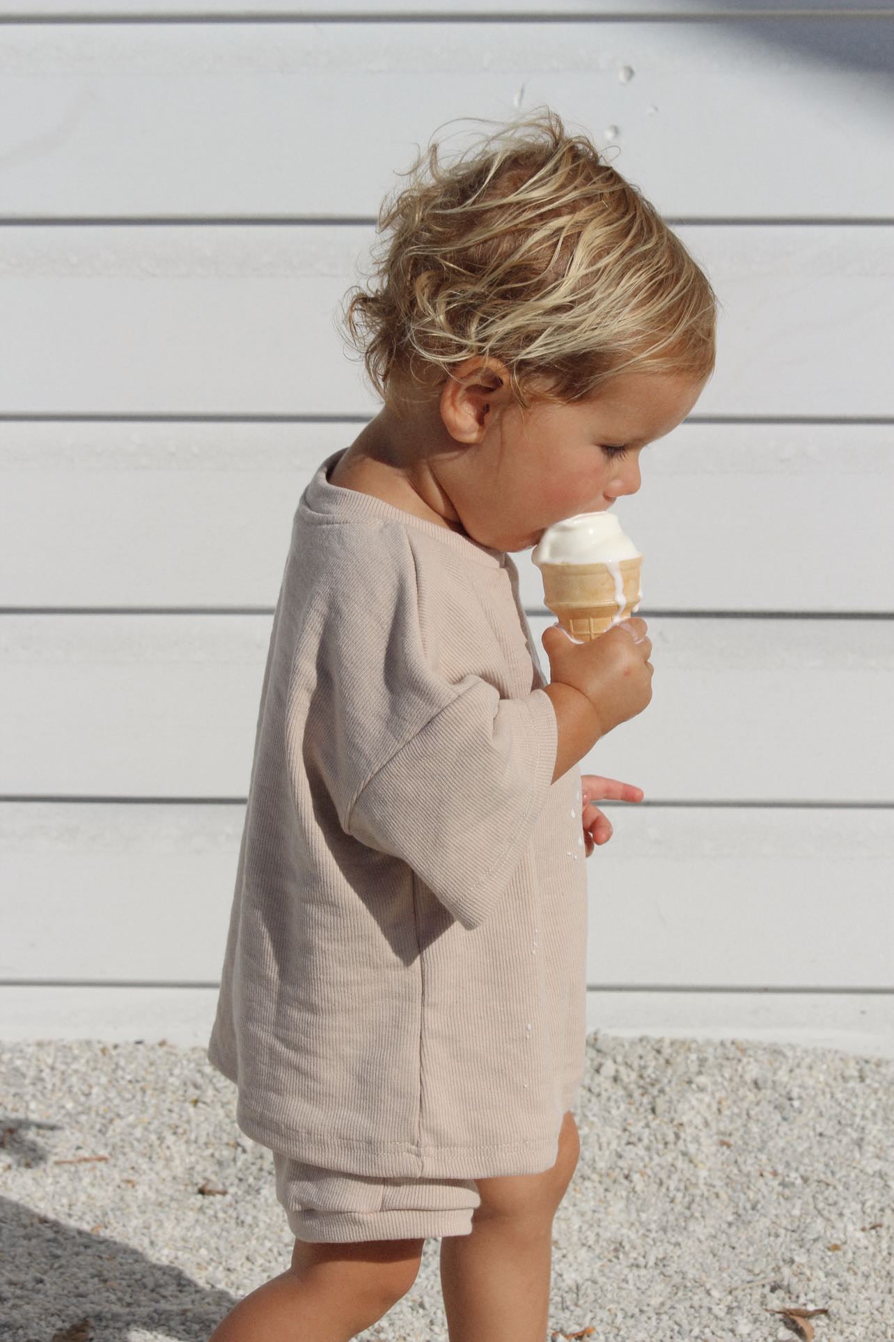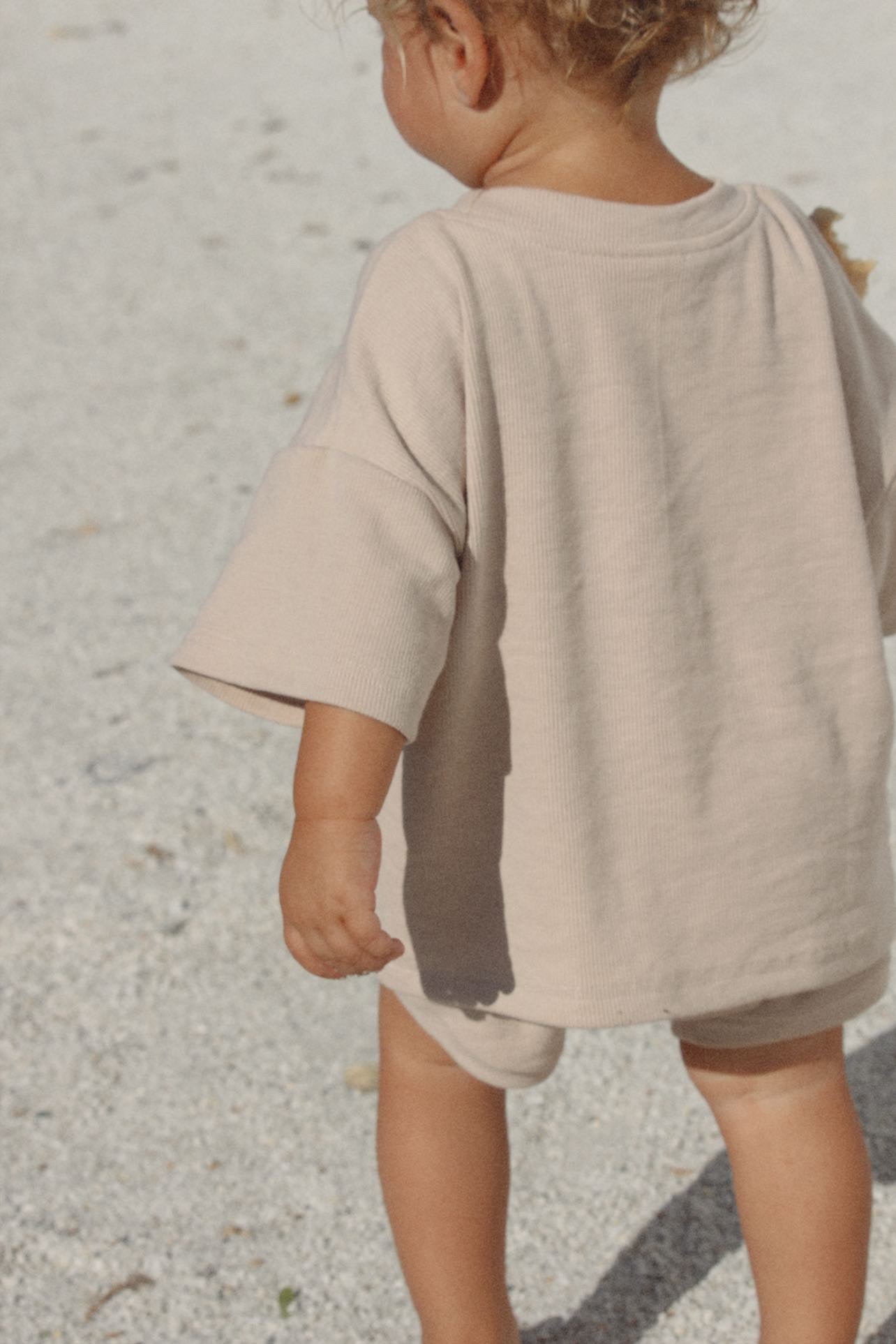 The durable construction ensures long-lasting wear, while easy care instructions make it a convenient choice. Let your child embrace carefree vibes with this iconic tee, shorties in the same fabric and colour also available.
