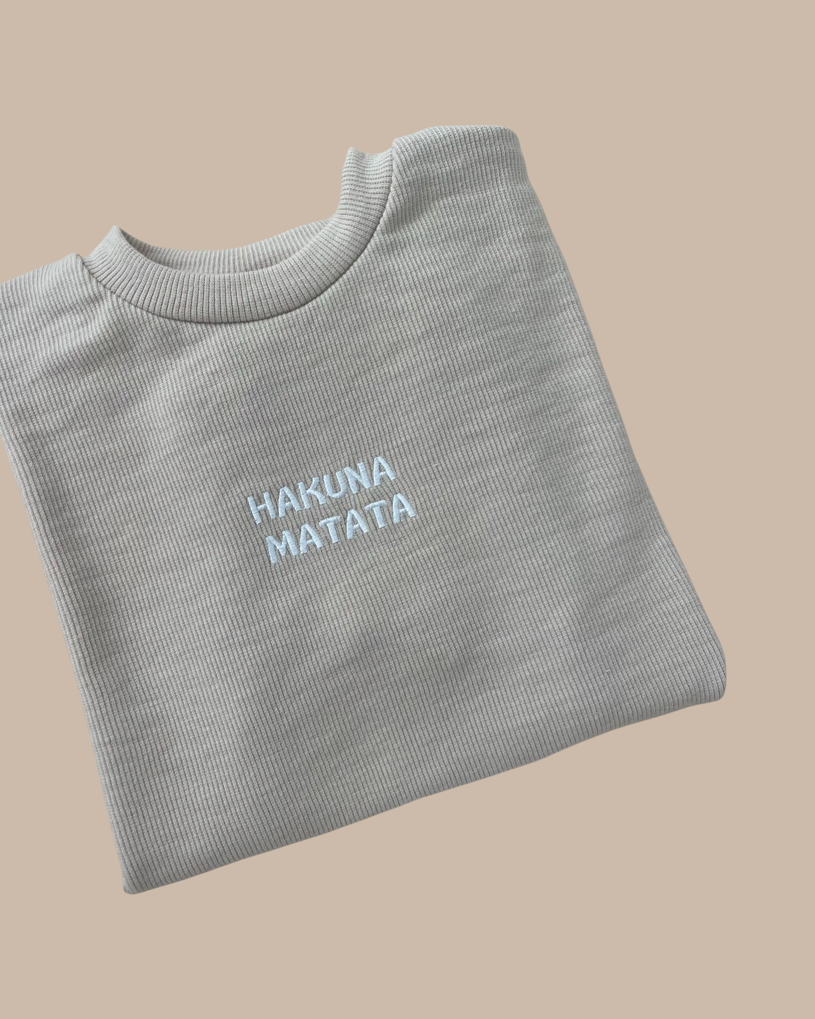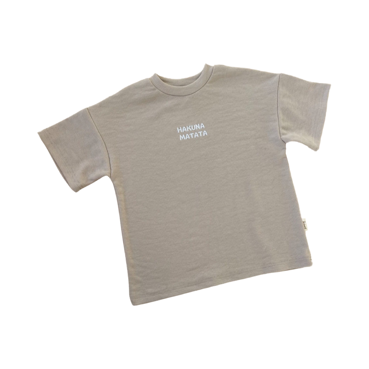 Introducing our Box Tee with Hakuna Matata Embroidery, a stylish and comfortable addition to your child's wardrobe. Crafted with premium materials, this tee features intricate Hakuna Matata embroidery inspired by the "It means no worries" motto. With its relaxed fit and breathable fabric, it offers all-day comfort for boys