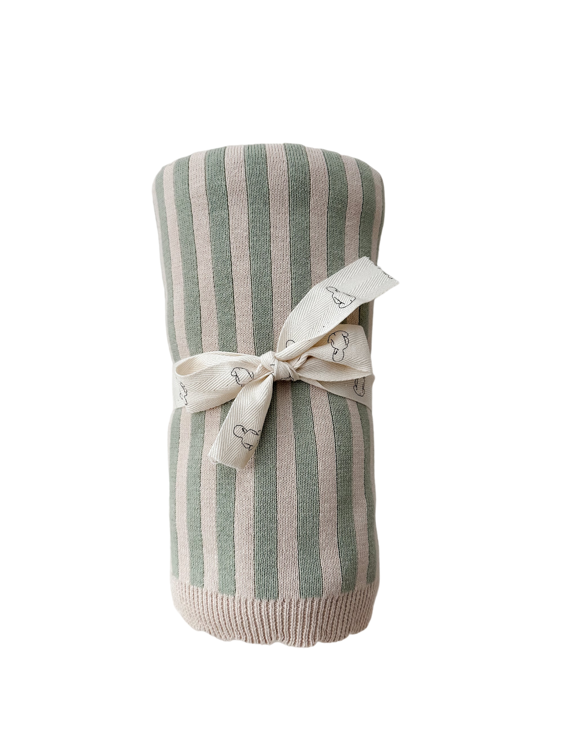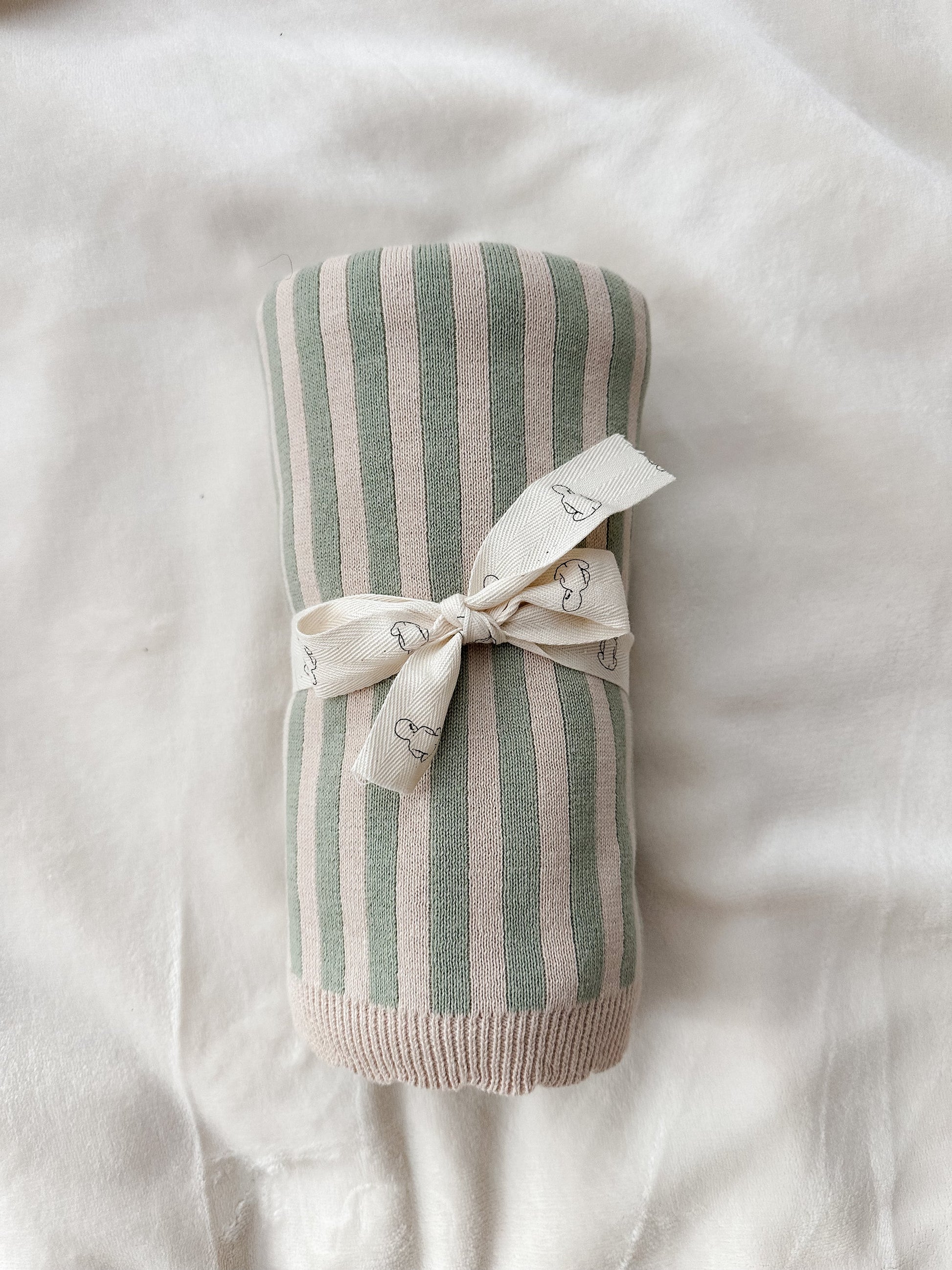 Adore our new whimsical and fun baby blankets. Crafted with 100% organic cotton, they feature a vintage striped pattern in three fashionable colors, and are completed with an elegant scalloped trim.
