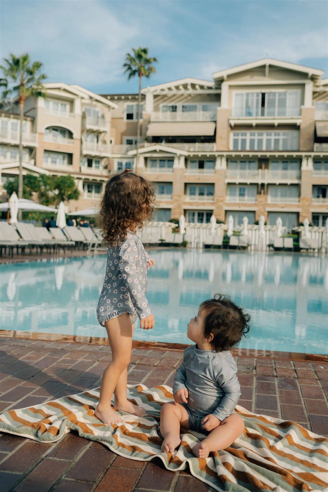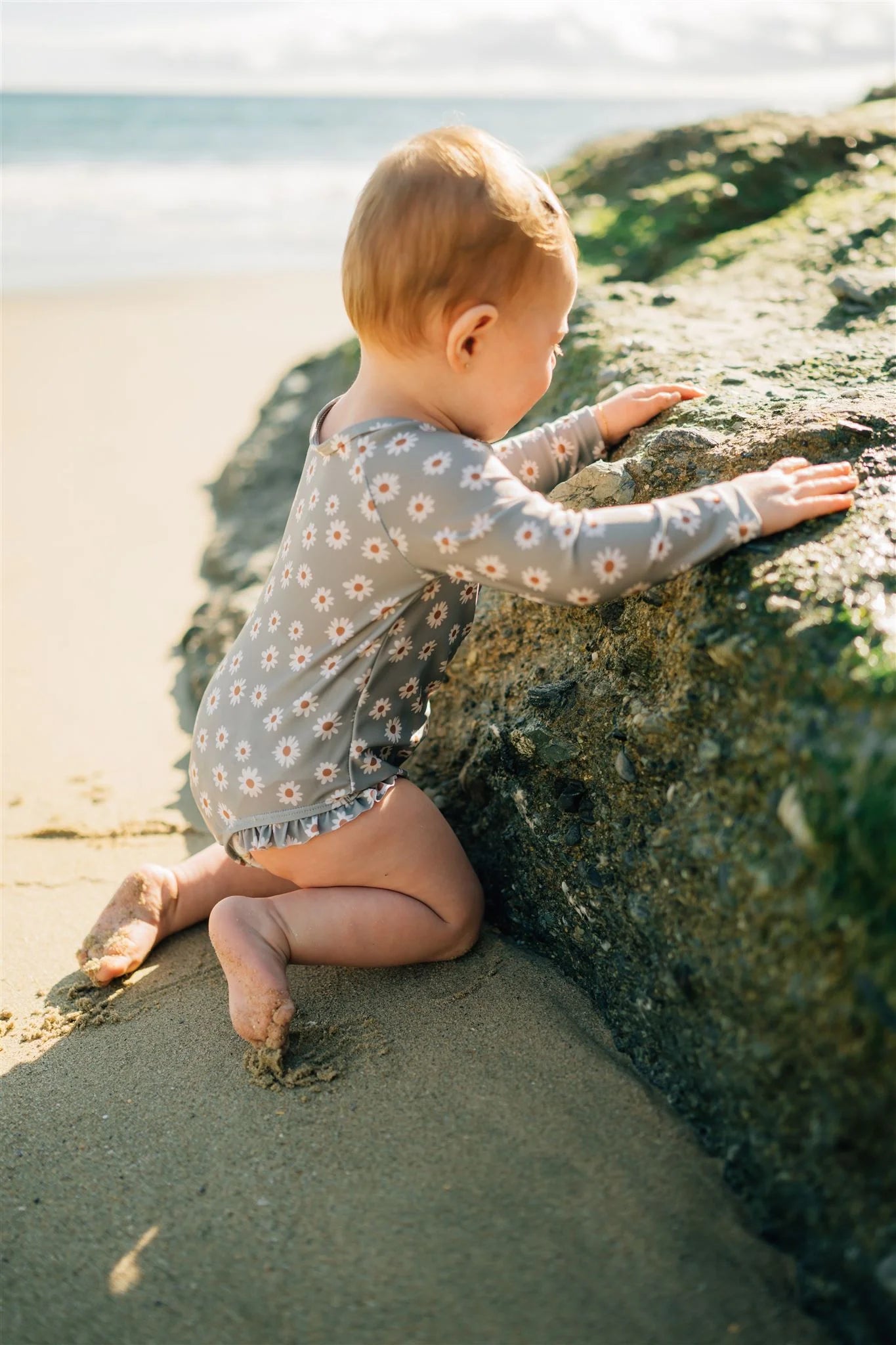 We are excited to introduce our 2024 Mebie Baby Swimwear Collection! Our swimsuits are made with high quality fabric and our exclusive timeless designs. Your little one is sure to make a splash at the pool in their Mebie Swimwear. This one-piece has snaps up to size 18 for convenient and quick diaper changes!