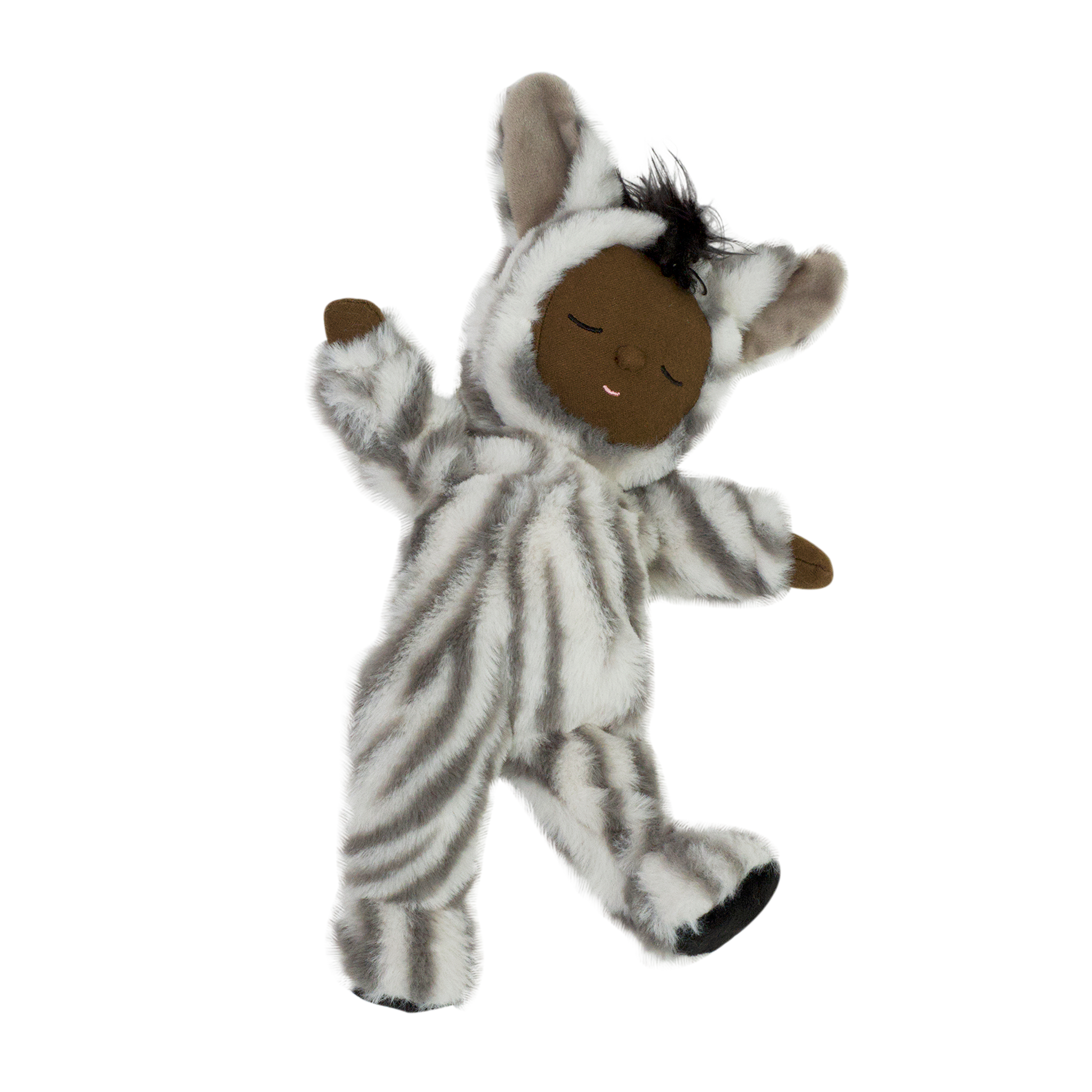 Zebra Mini, so cuddly and cute, loves to doze in its soft fluffy suit. Made for snuggles and snoozy days with the herd, this velvety little Cozy loves to play!