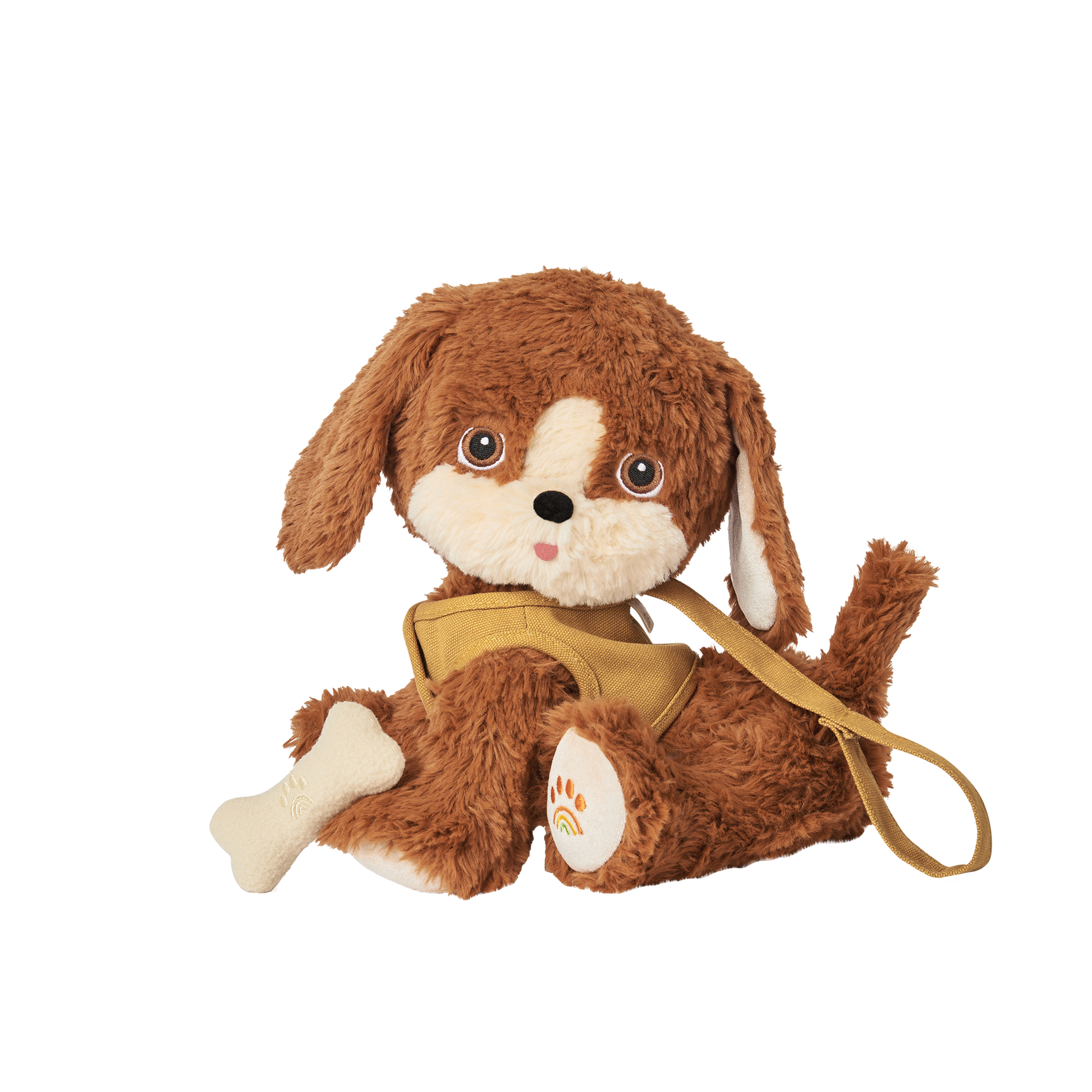 Made from soft plush fabric that is 100% recycled with velvety ears to nuzzle, Buddy is fully poseable and can stand, lay down and even sit! Buddy's head moves and is embroidered with the sweetest doggy face, plus there's a rainbow surprise on one of Buddy's little paws!