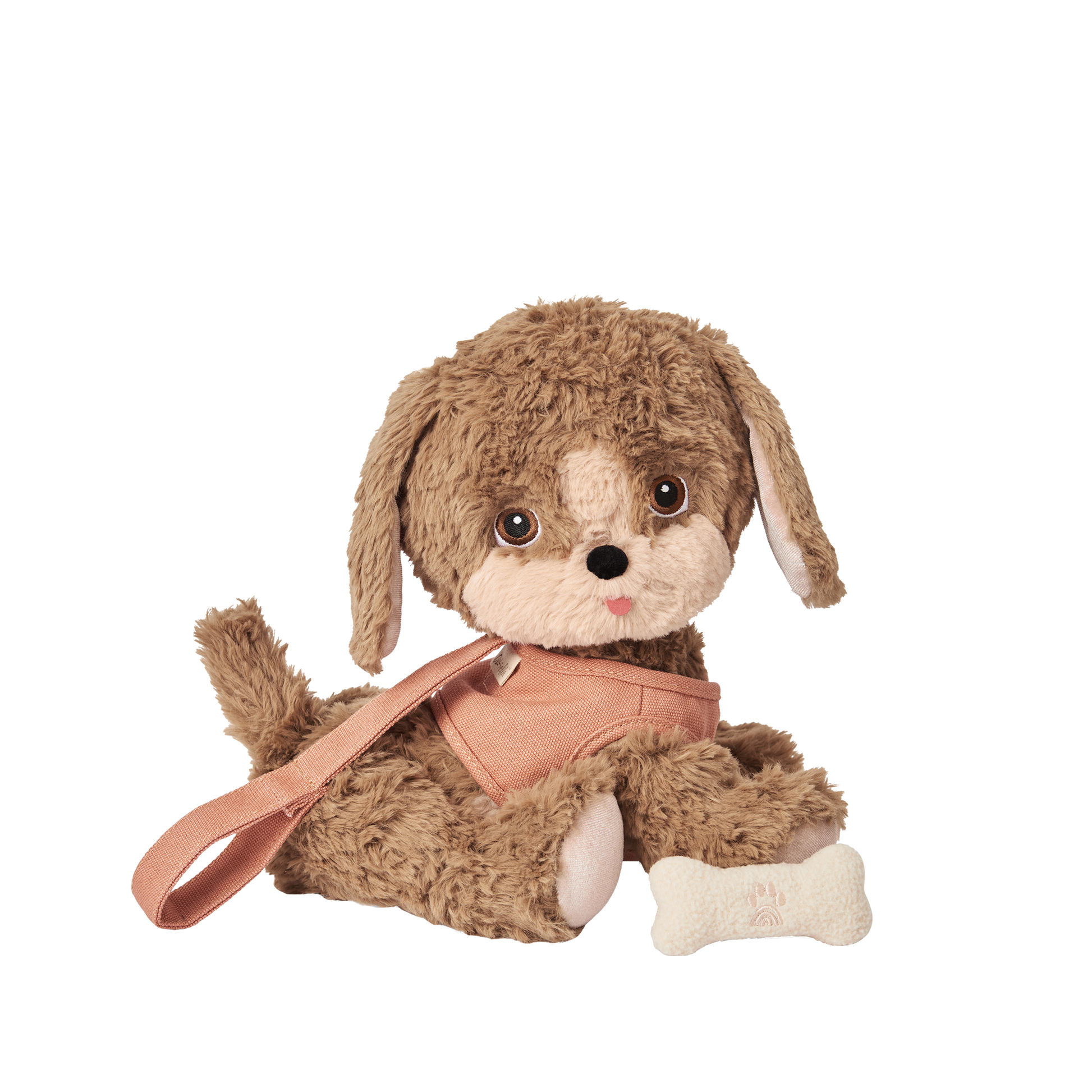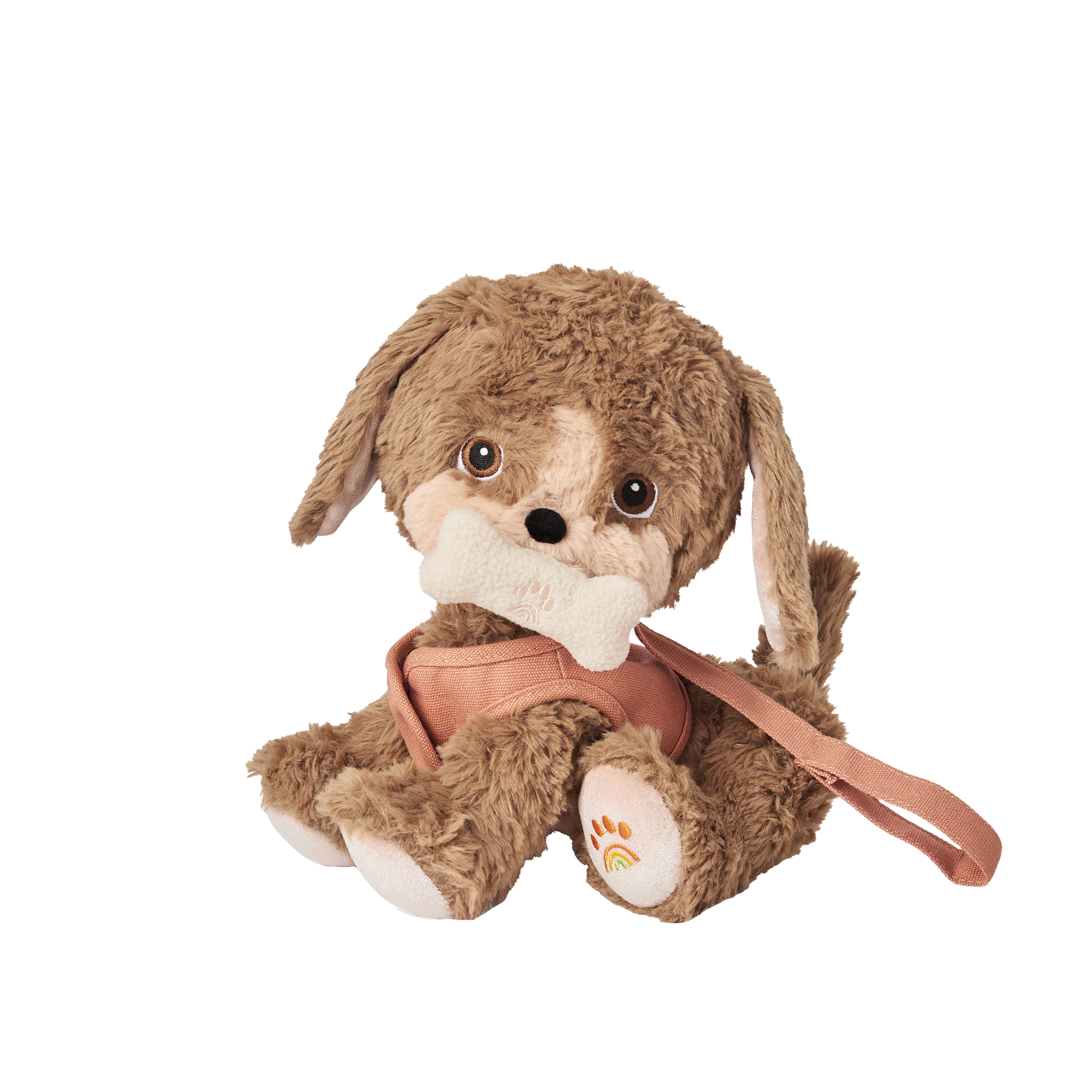 Made from soft plush fabric that is 100% recycled with velvety ears to nuzzle, Honey is fully poseable and can stand, lay down and even sit! Honey's head moves and is embroidered with the sweetest doggy face, plus there's a rainbow surprise on one of Honey's little paws!
