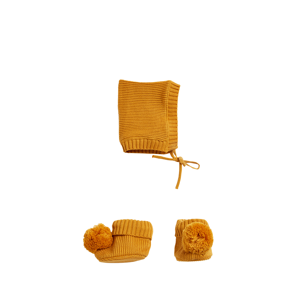 This lovely snuggly set comes with a 100% cotton knit bonnet and snug, hard-soled booties with a knit cuff and cute fluffy pom poms on the toes. Dinkum Dolls can stand on their own two feet in the Honey booties too!