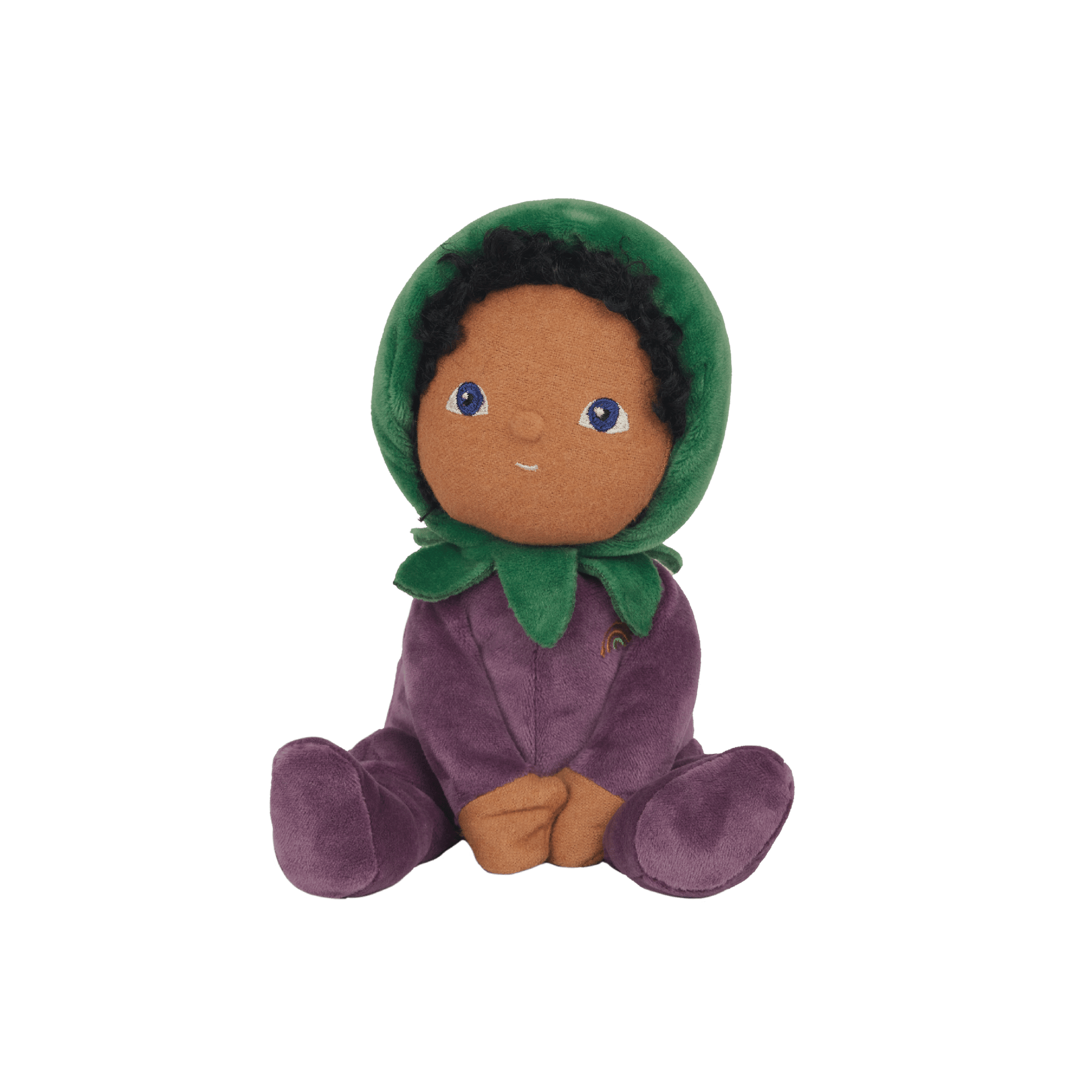 Dinky Dinkum Ellis Eggplant, the charming veggie virtuoso! With his deep purple romper and adorable little hood, Ellis is a true standout in the garden patch. It's not hard to fall in love with Ellis because he is cuddly and loves being the center of attention - what an egg-cellent combination!