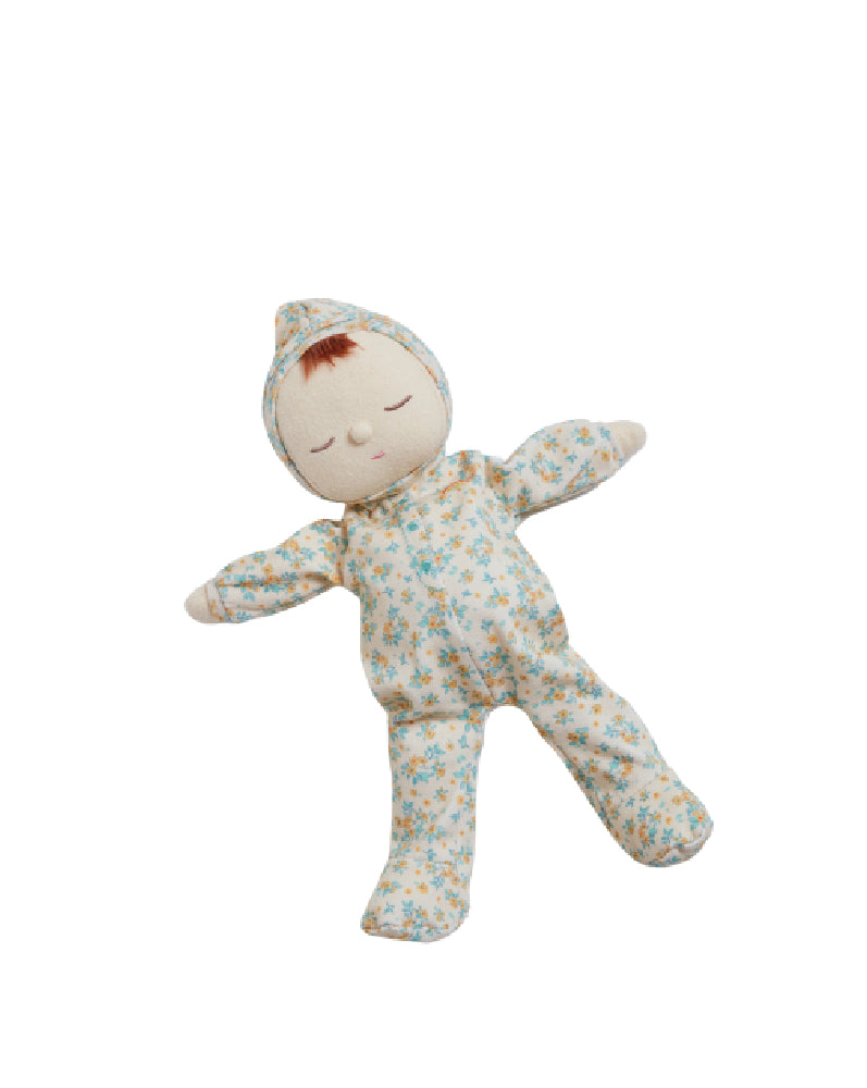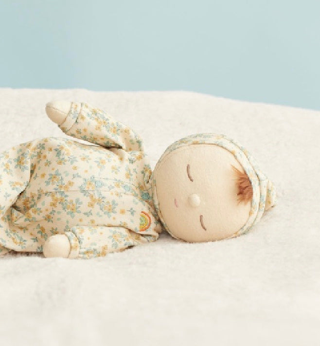 Sweetly-a-slumber and ready to snuggle, say hello to Dozy Dinkum Pickle Blossom! This limited-edition Daydream Dozy is made from 100% Cotton printed in our nostalgic Vintage Blossom print. Soft and precious, Pickle Blossom is made for cuddles and play and can't wait to snooze the days away with you! Pickle Blossom is posable, made from super soft cotton and features the sweetest embroidered face with a little tuft of hair. Each Daydream Dozy Dinkum wears a non-removable suit complete with a rainbow right over their heart. Pickle Blossom is a beautiful first gift for newborn babies or would make a lovely addition to your Dinkum Doll family for older kids too. Each Daydream Dozy arrives packaged in a soft 100% cotton bag with a matching drawstring! This bag also doubles as a handy laundry bag for your Dozy when they're in need of a wash (make sure it’s a cool, gentle machine wash only!).