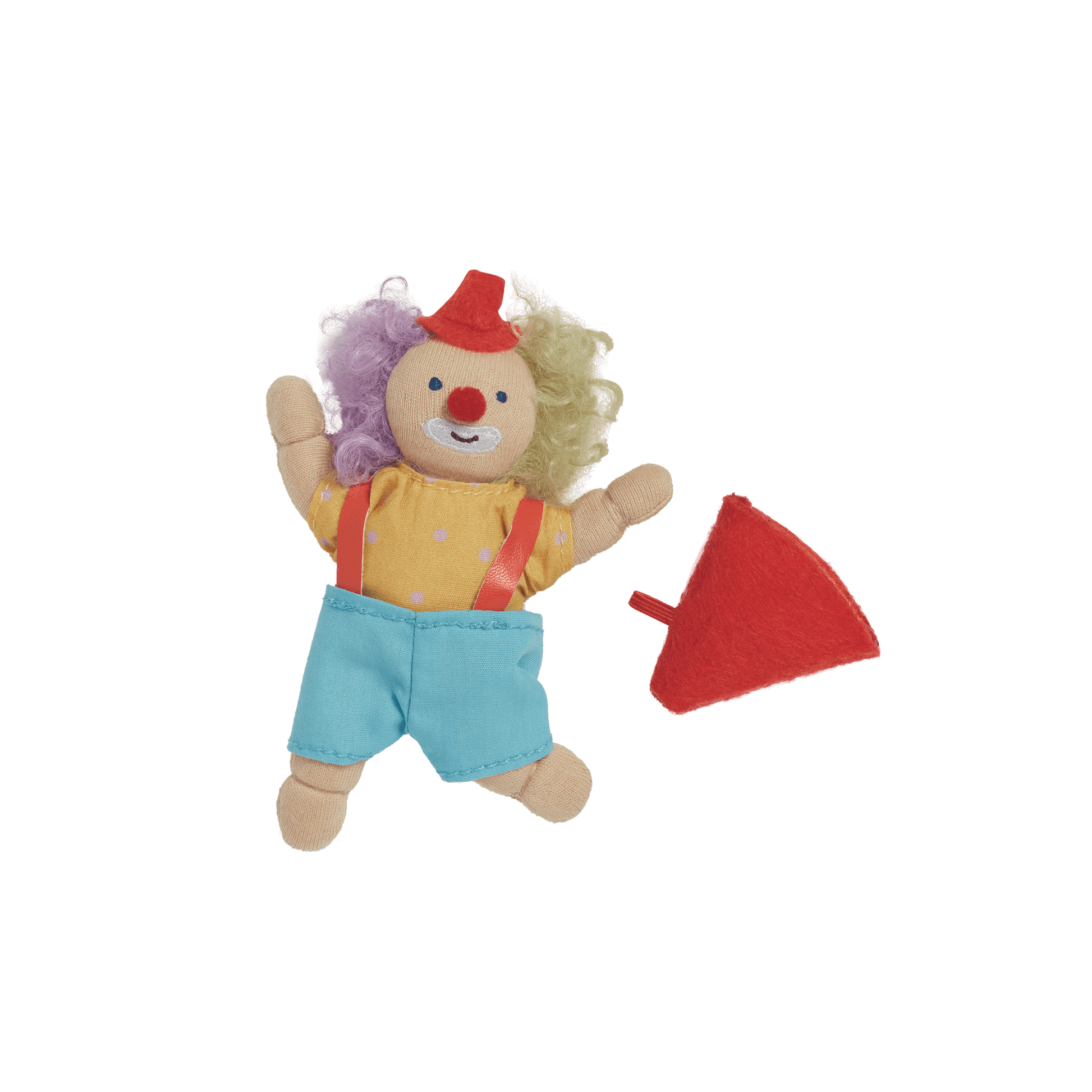 Meet Confetti the Clown, the heart and soul of the Holdie™ Circus! Whether juggling rainbow-colored balls or performing acrobatic tumbles, Confetti’s antics are bound to leave you in stitches. Confetti is more than just a clown; he is a burst of happiness that brings joy to every performance. Each Holdie Folk is posable and comes dressed in a removable outfit, perfect for imaginative play. These tiny folk are handmade, making each one unique and special. Confetti the Clown is a collectible toy – a must-have for any kids circus toys collection. Collect all of the Holdie Circus Folkto create your very own magical circus world!