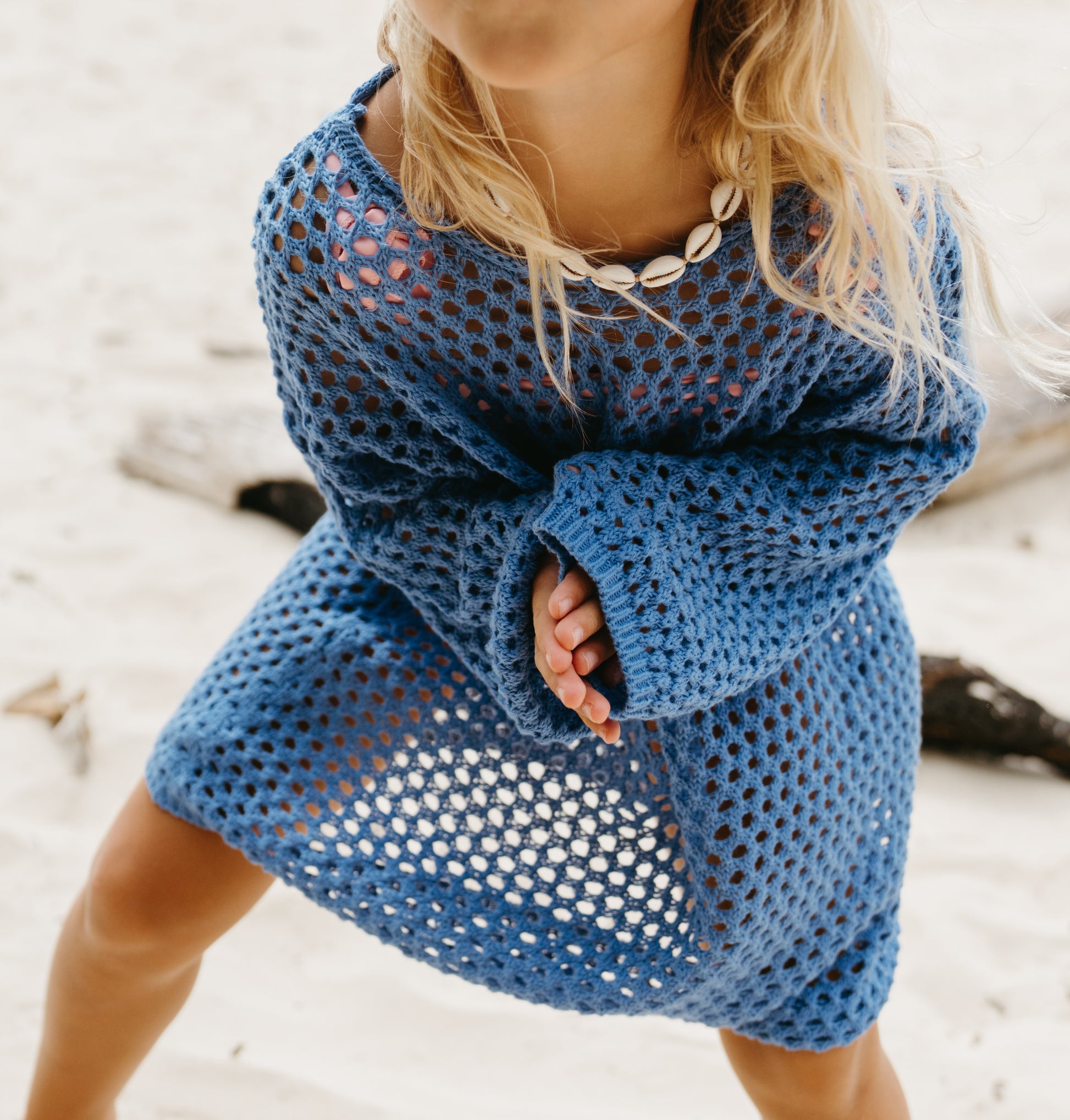 The breathable crochet pattern ensures your child stays cool and comfortable during sunny days at the beach or poolside playdates. Designed for carefree, laid-back moments, it’s perfect for layering over swimwear or pairing with matching pieces for a playful yet stylish look.