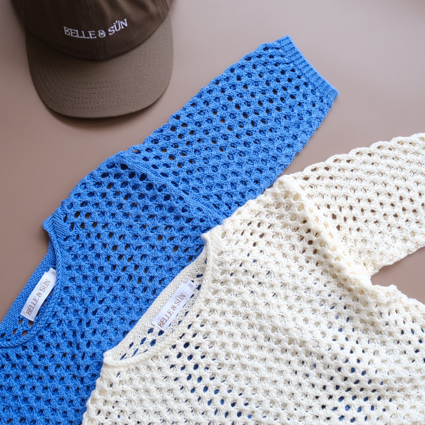 The soft, neutral tone and lightweight crochet pattern make it a versatile summer essential, perfect for layering over swimwear or dressing up casual outfits. Designed with carefree moments in mind, it’s ideal for sun-soaked beach days, family holidays, and playful adventures.