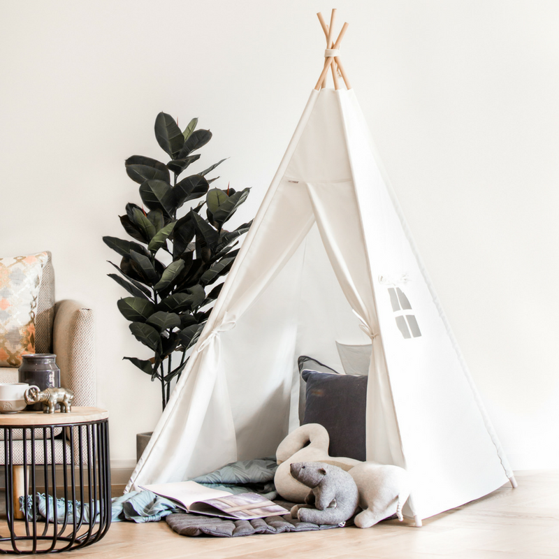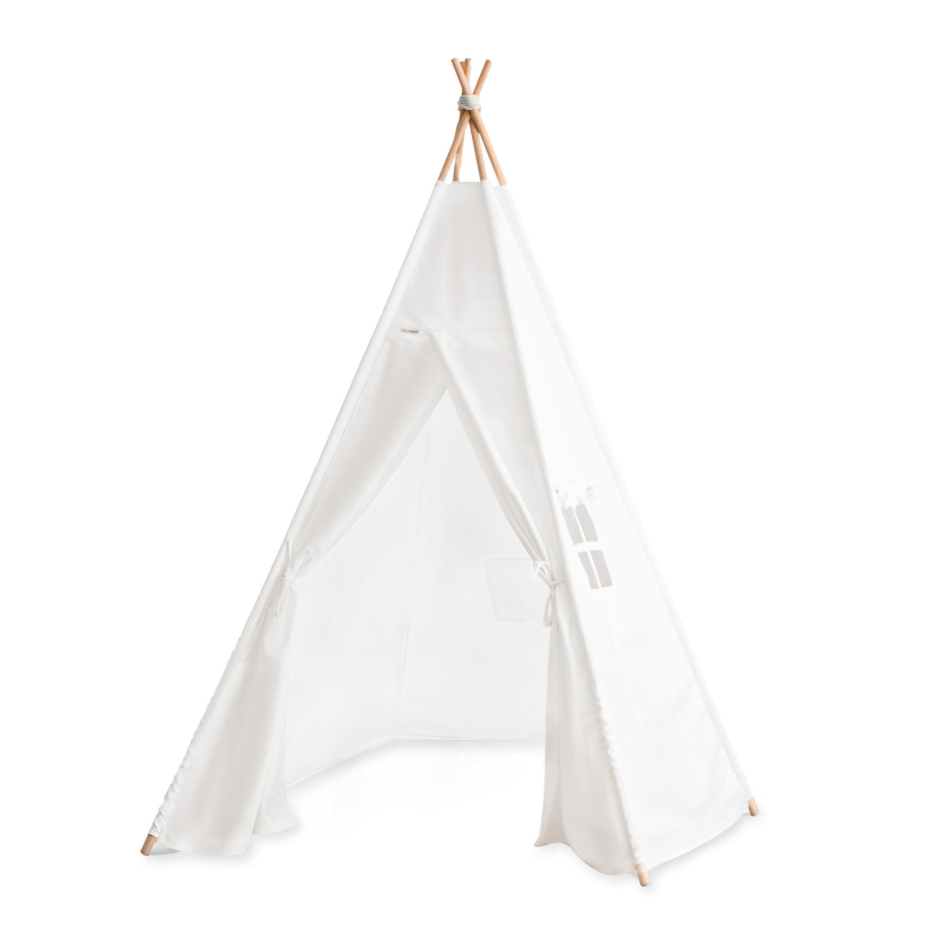 The Cattywampus 'White' coloured Teepee is made in a crisp white fabric. It is made from 100% pure cotton canvas, it is soft yet durable, perfect for your little human to play inside. We call this teepee our Snow Dust!