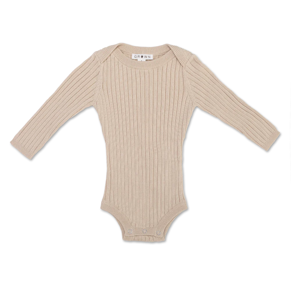 ORGANIC RIBBED ESSENTIAL BODYSUIT - PEBBLE