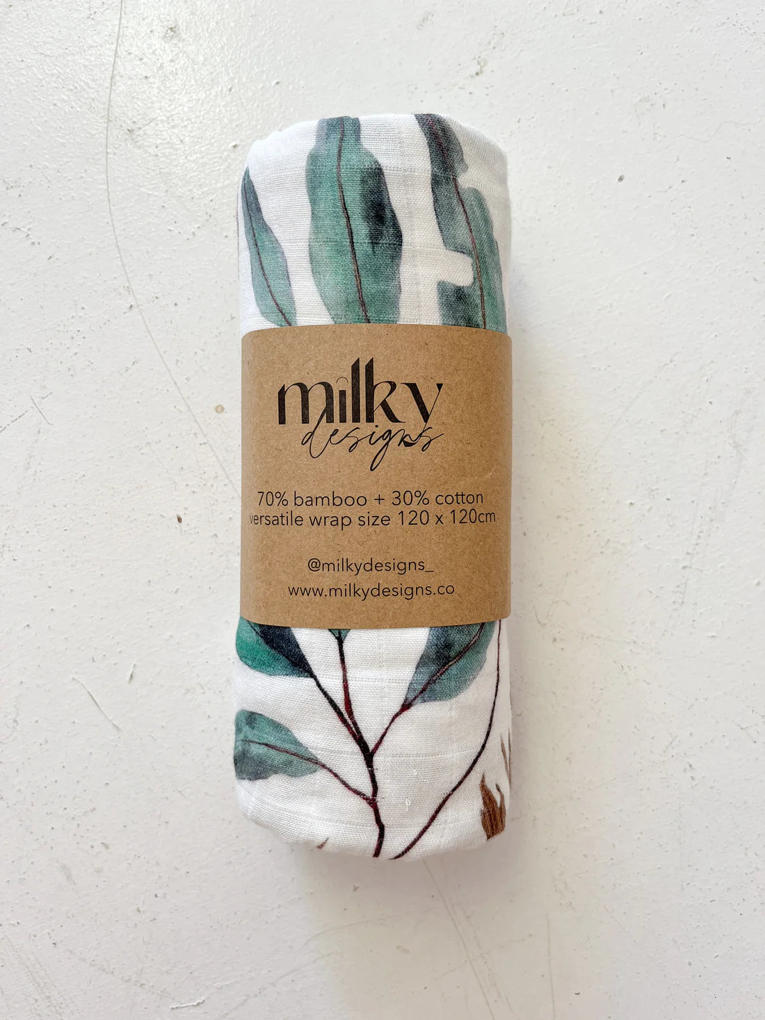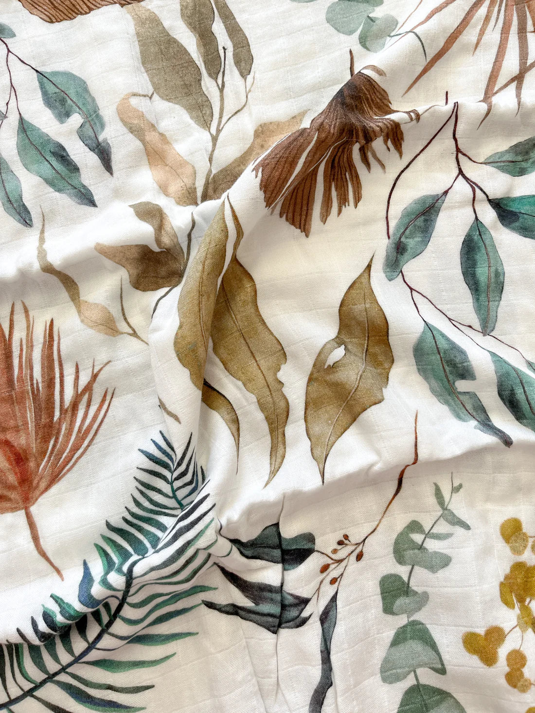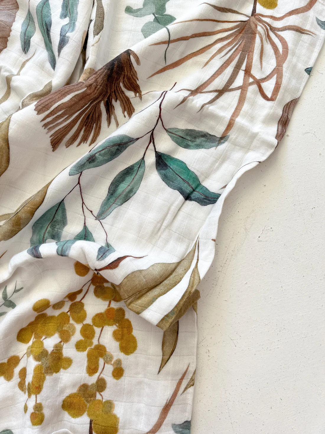 With versatility in mind, they can be used for swaddling, nursing, a lightweight blanket, pram covers and bassinet sheets and for our Mama’s they’re used as throws, outdoor towels and our favourite way, a sarong for the warm summer months.