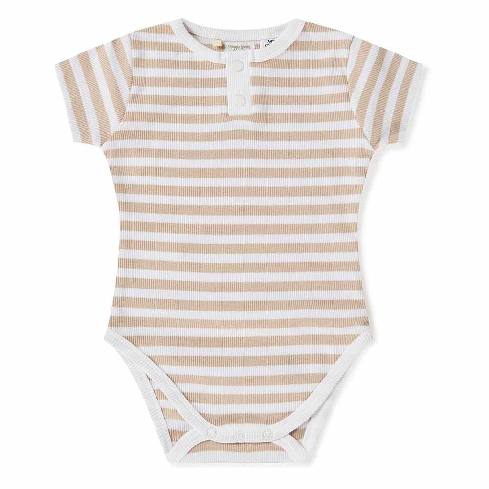 Our Snuggle Hunny Pebble Stripe bodysuit is a great choice for girls and boys. Snuggle Hunny organic bodysuits are made for babies and toddlers. This bodysuit is short-sleeved, perfect for warmer weather, and under layers. Soft and stretchy, they are easy-care and coordinate well . Our bodysuits are also really comfortable to sleep in. All Snuggle Hunny clothing is made with Certified Organic Cotton. Features Include: * Exclusive design * Sizing: Newborn to Size 2 * Soft and stretchy * Fitted style * Easy to wear * Lightweight and breathable * Certified organic cotton * 97% Organic Cotton / 3% Elastane View Sizing Chart Designed in Australia.
