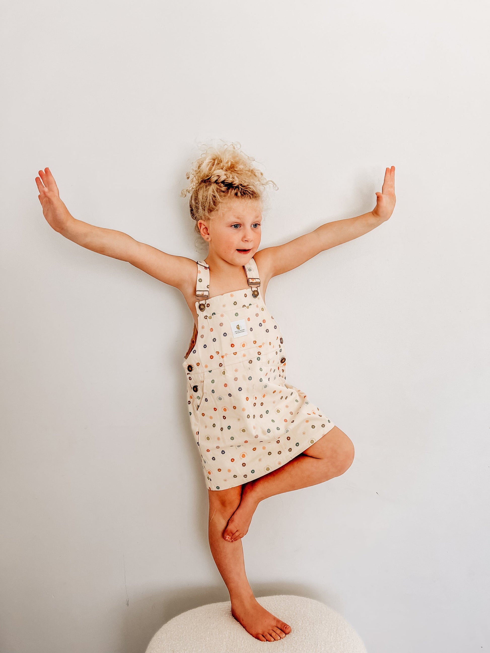 Amelia in images wears a size 3Y and is 4.5 years old.
