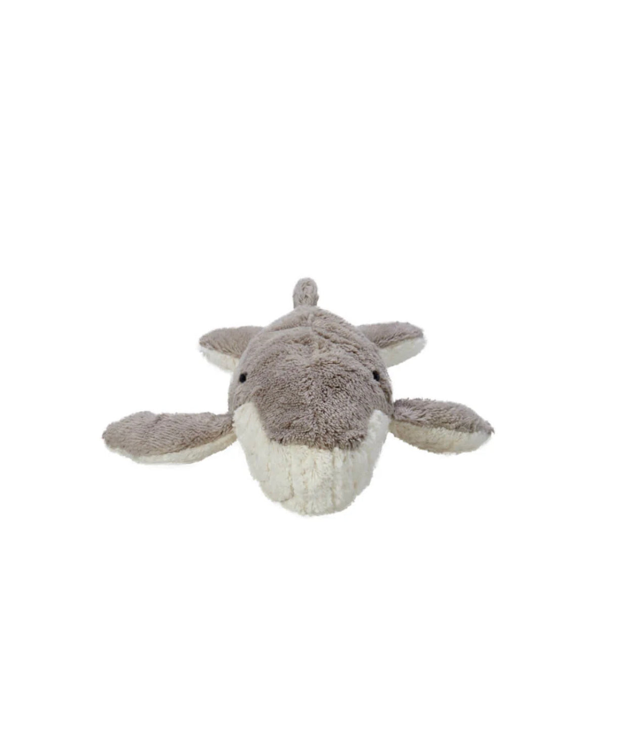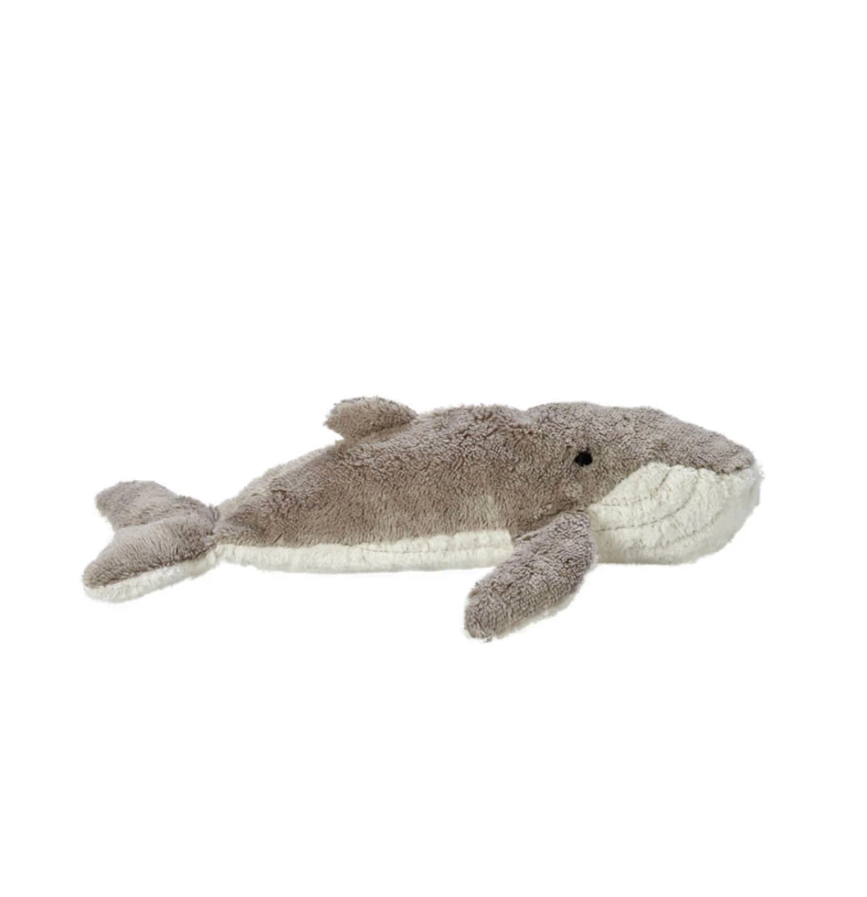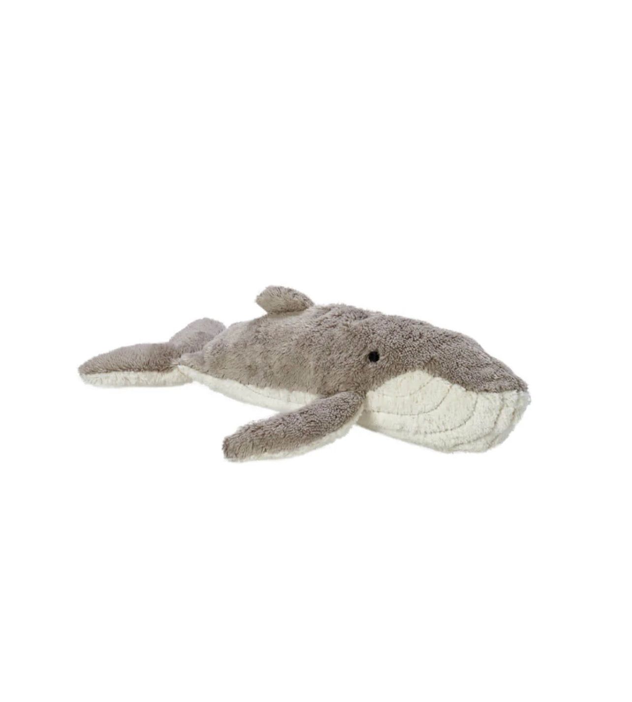 The SENGER Cuddly Small Whale is a soft and cuddly toy that doubles as a weighted toy and a gentle heat bag for children.