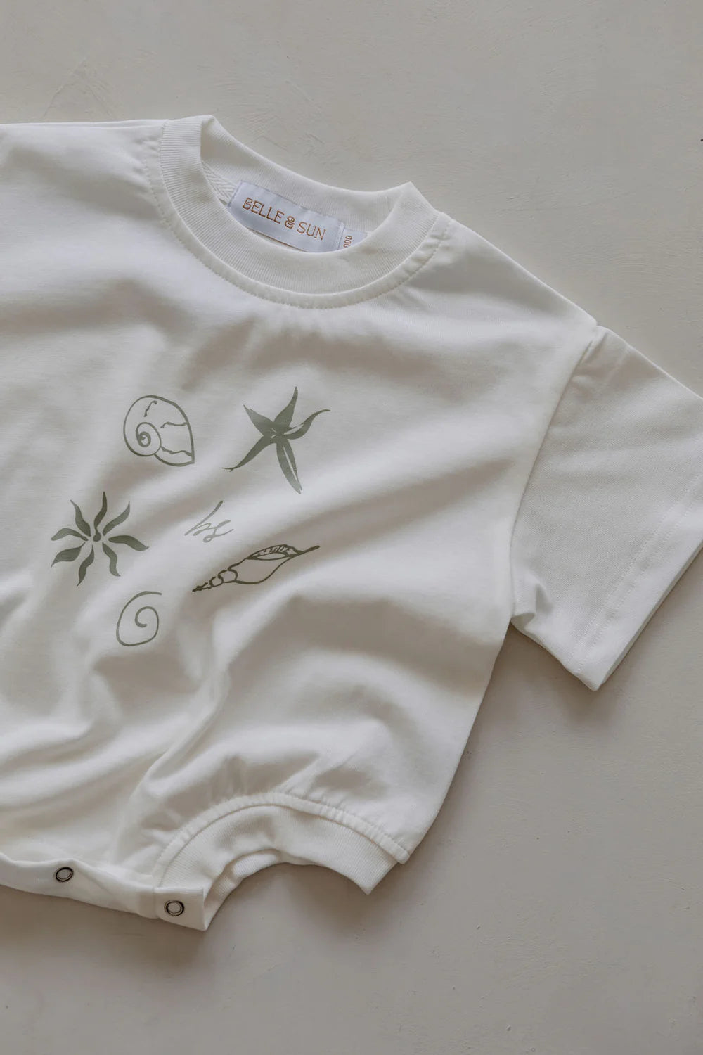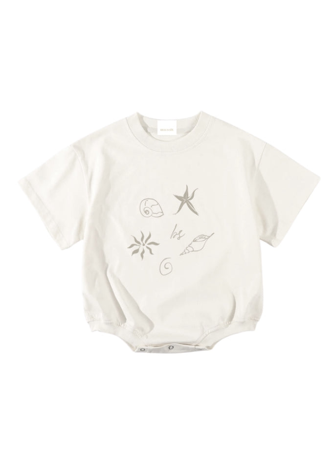 Bring the beauty of the ocean to your little one's wardrobe with the Sea Treasure Romper. This adorable romper features whimsical sea-inspired artwork, showcasing shells, starfish, and other ocean treasures in soft, earthy tones. Made from premium, breathable cotton, it ensures all-day comfort for your baby. The relaxed fit, snap closures at the bottom, and envelope neckline make dressing and diaper changes a breeze. Perfect for sunny adventures or cozy days at home, this romper is a must-have for tiny sea lovers.