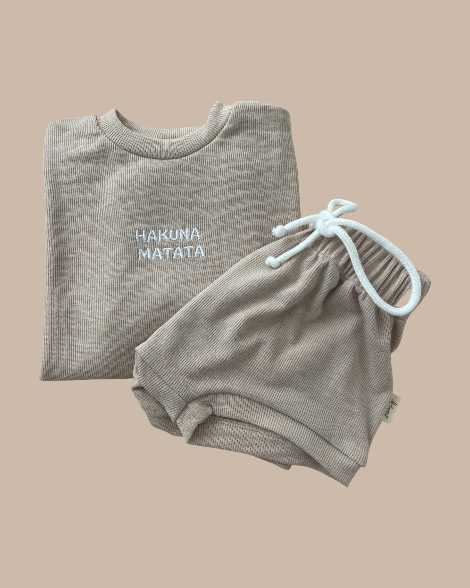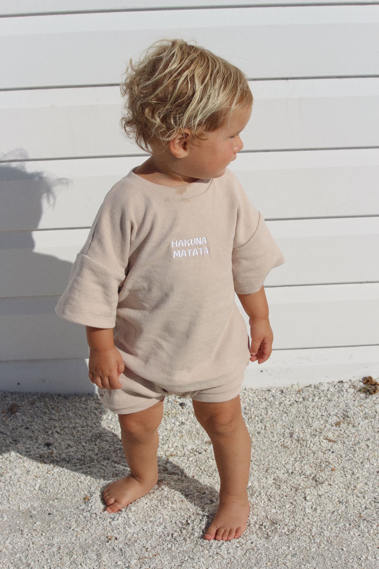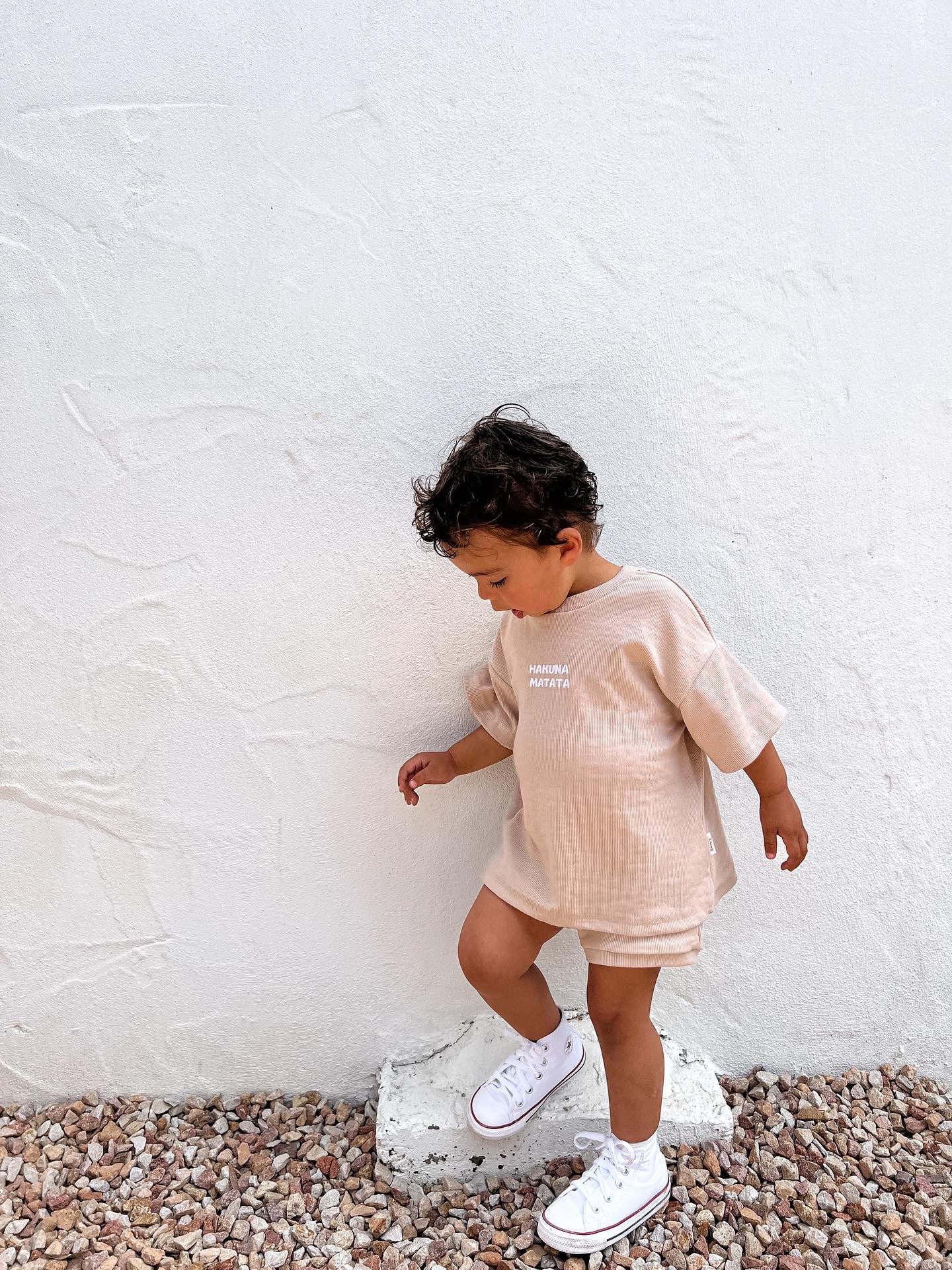 Introducing our Shorties in peanut butter in premium fabric which matches perfectly with our Hakuna Matata box tee , the ultimate combination of comfort, style, and durability for your little ones. These shorties are designed with meticulous attention to detail, using only the finest materials to provide a superior wearing experience.