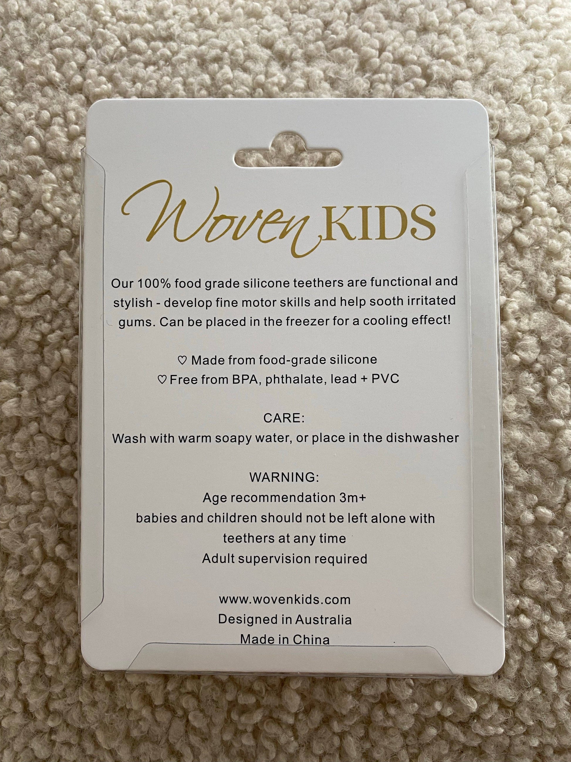 Our 100% food grade silicone teethers are functional and stylish - develop fine motor skills and help sooth irritated gums. Can be placed in the freezer for a cooling effect!