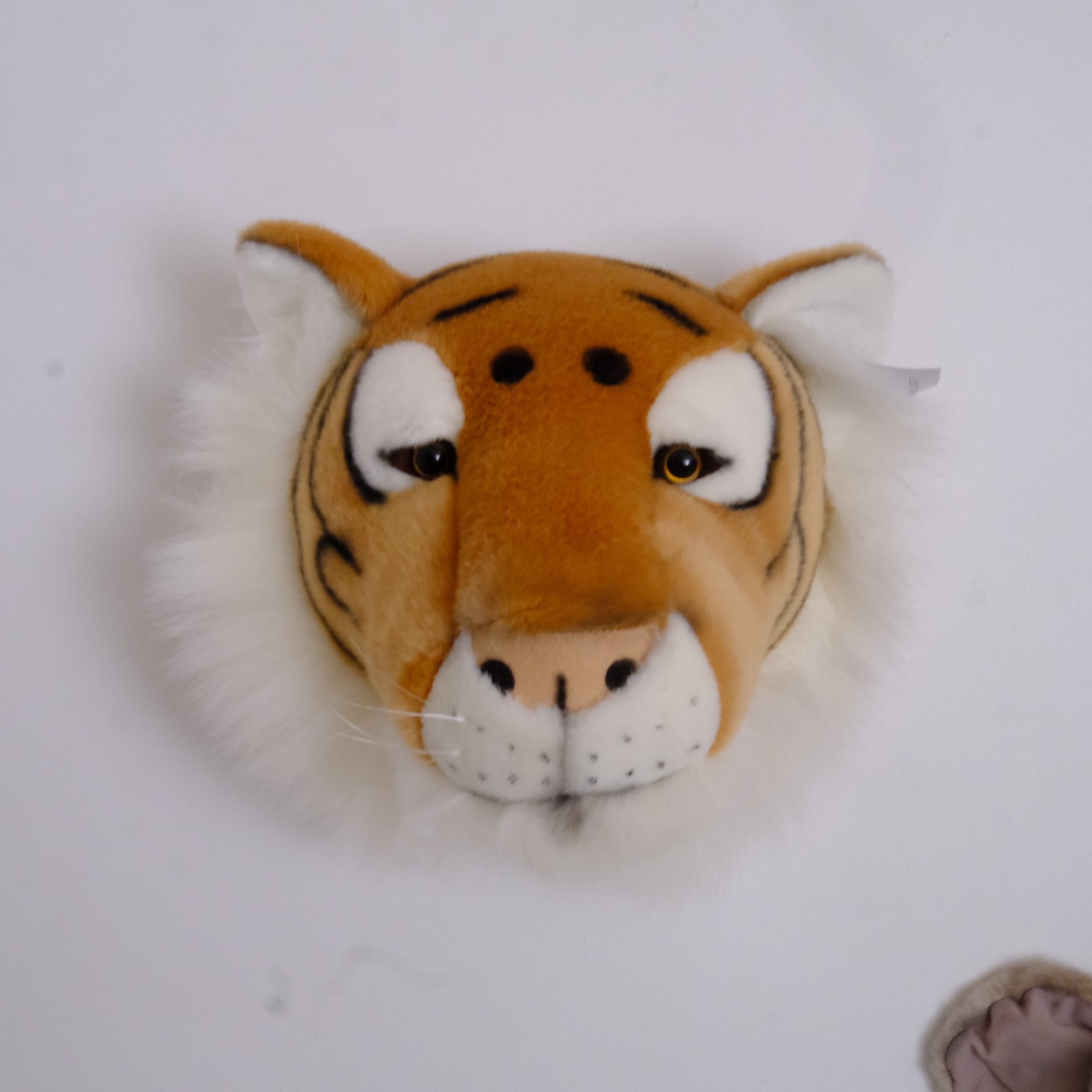 Hi, I'm Felix the tiger. This super soft animal head loves to hang on the wall for all to see. The animal head includes a loop so the head can easily be displayed on the wall.